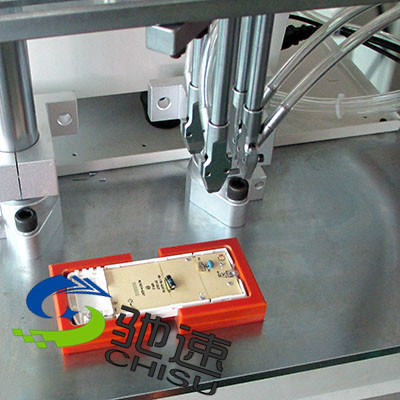 根据产品特点及企业生产要求,这里我们采用驰速四轴自动锁螺丝机,一次同时拧好4颗螺丝,